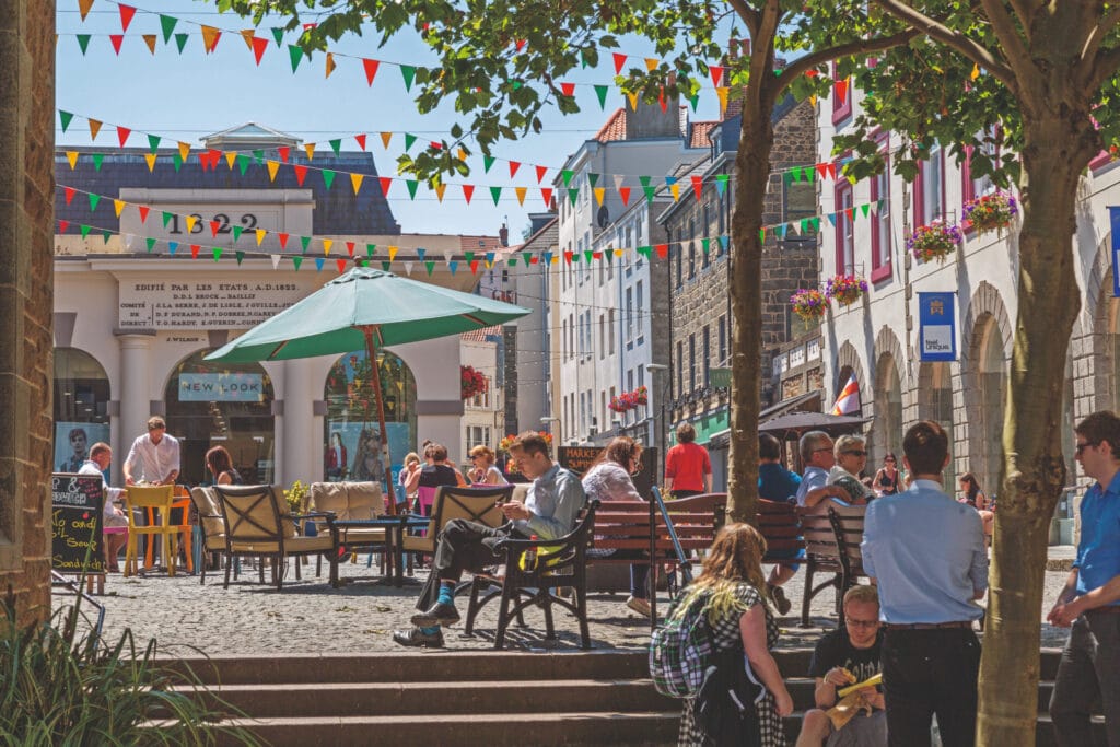 Inseln sind kleine Welten, die sich nur selten einen fremden Lebensrhythmus aufzwingen lassen. Für Guernsey gilt das ganz besonders: Zwar haben sich in den alten Lagerhäusern am Hafen von St. Peter Port internationale Banken und Versicherungen einquartiert, doch immer noch markiert ein Kanonenschuss aus dem 800-jährigen trutzigen Castel Cornet die Mittagszeit.