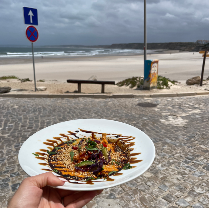 Auf der kleinen Sandinsel machen wir unseren Mittagsstopp im Restaurant Taberna do Ganhão. Das Essen war übrigens sehr lecker. Die kleine Insel ist ein Surferparadies und kann zu Fuss umrundet werden. Ein Spaziergang, der sich lohnt. Die Aussicht ist echt grandios. Bereits die Anreise auf Baleal ist sehenswert. Eine kleine schmale Strasse fährt auf die Insel, links und rechts davon nur Meer.