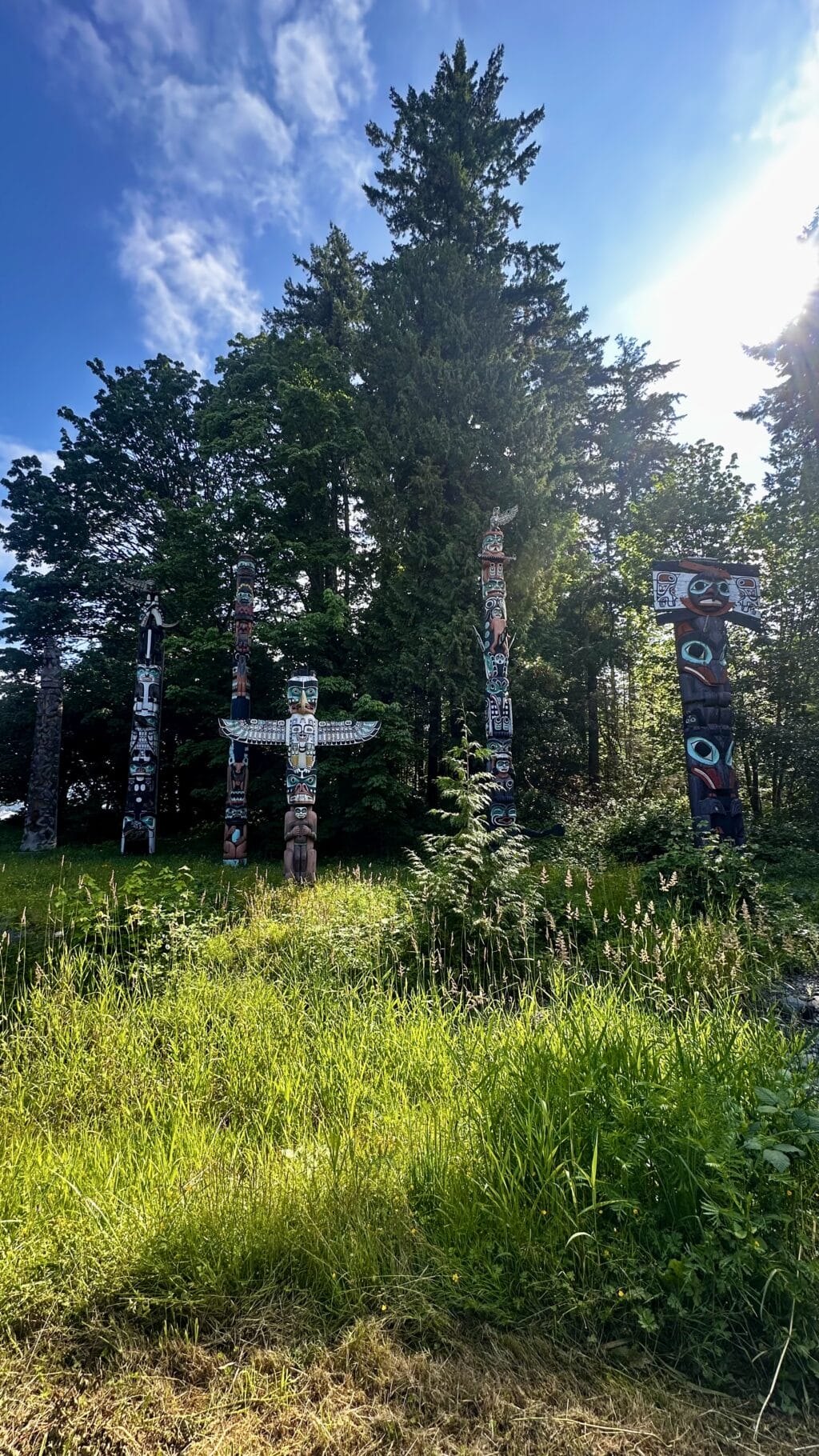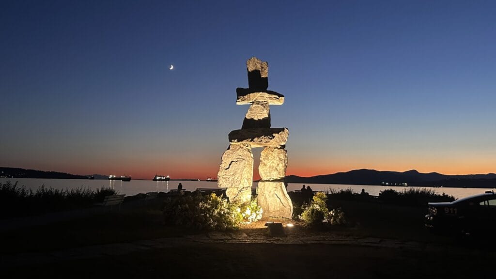 Am nächsten Morgen lernen wir die Stadt bei einer spannenden Stadtführung dann so richtig kennen. Auch hier ist das Erbe der First Nations anzutreffen. So gibt es im Stanley Park, der grünen Lunge Vancouvers, ein paar riesige, wunderschön geschnitzte Totempfähle zu bestaunen, oder an der Englisch Bay eine grosse Inukshuk-Skulptur, welche das Maskottchen der Olympischen Spiele 2010 war und als ein spirituelles Zeichen der Freude und des Willkommens bei den First Nations gilt.
