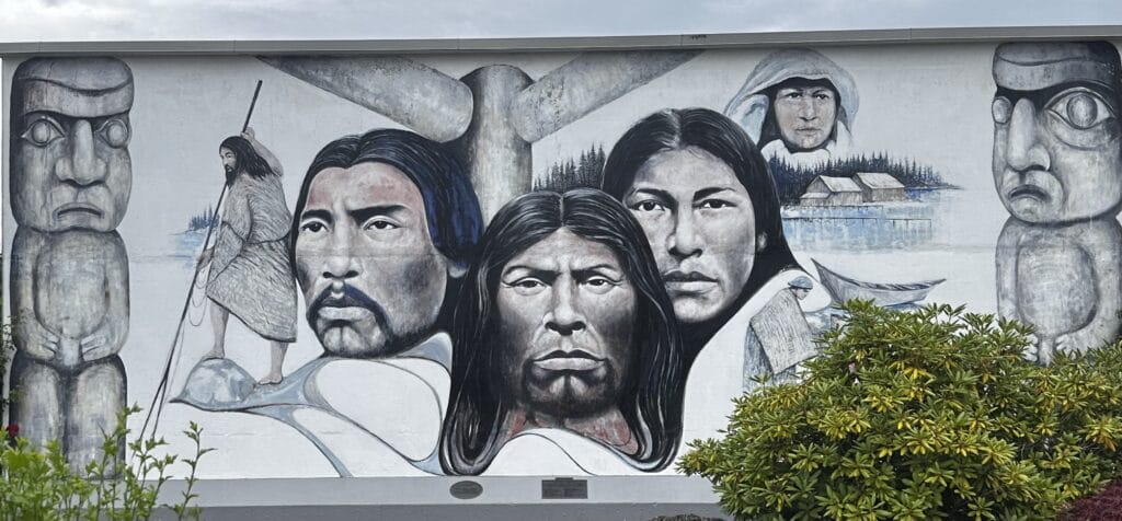 Auf Vancouver Island besuchen wir am nächsten Tag zuerst die Mauergemälde in Chemainus. Über 50 Gemälde, über die ganze Kleinstadt verteilt, erzählen die Geschichte der Holzfällerstadt und der lokalen Kultur.